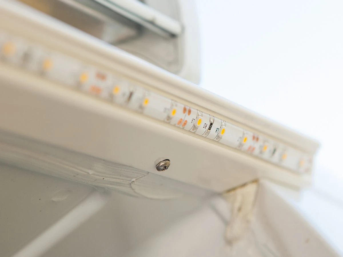 De RT100 voorkomt het binnendringen van regenwater bij het openen van de schuifdeur en dient tegelijkertijd ideaal als buitenverlichting. De lichtstrip bestaat uit een aluminium profiel met geïntegreerde led-verlichting met een vermogen van 7 Watt en 435 lumen.