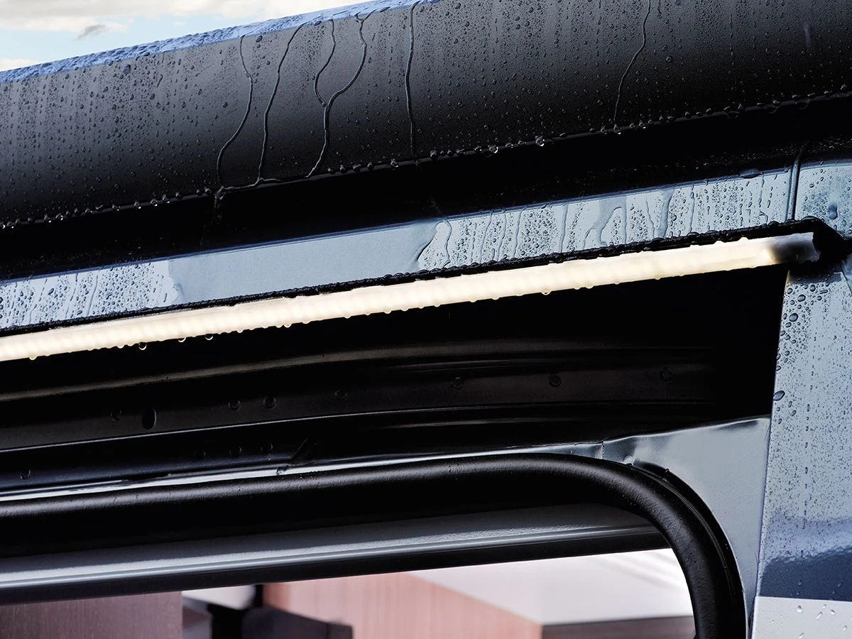 Het openen van de schuifdeur van je bus zorgt vaak voor een ‘automatische douche’, je kent het misschien wel. Met de Dometic Raintec RT100 is dit voorgoed verleden tijd. Deze RT100 leidt het regenwater naar de zijkant.