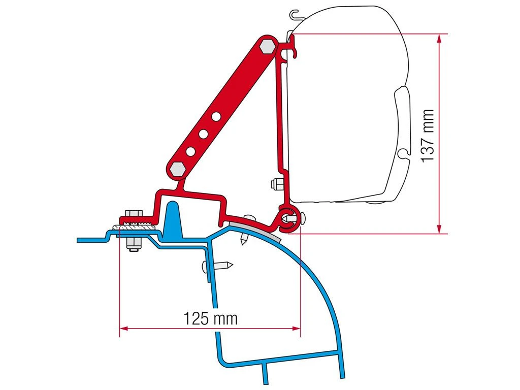 Deze adapter maakt het mogelijk om de Fiamma F45 luifel te bevestigen aan een Renault Master H2, Opel Movano H2 of Nissan Interstar H2 vanaf 1998 t/m 2010. De set bestaat uit 3 beugels van 8 cm.