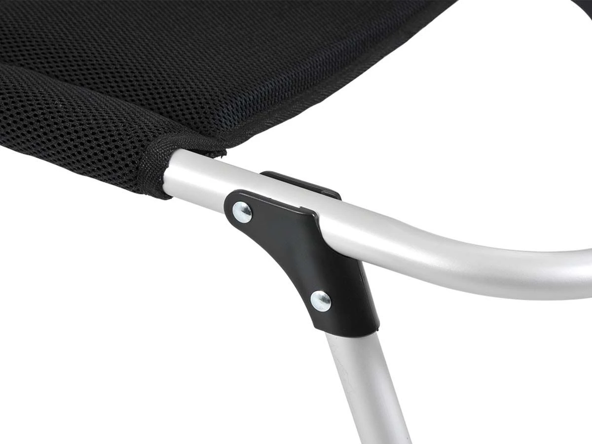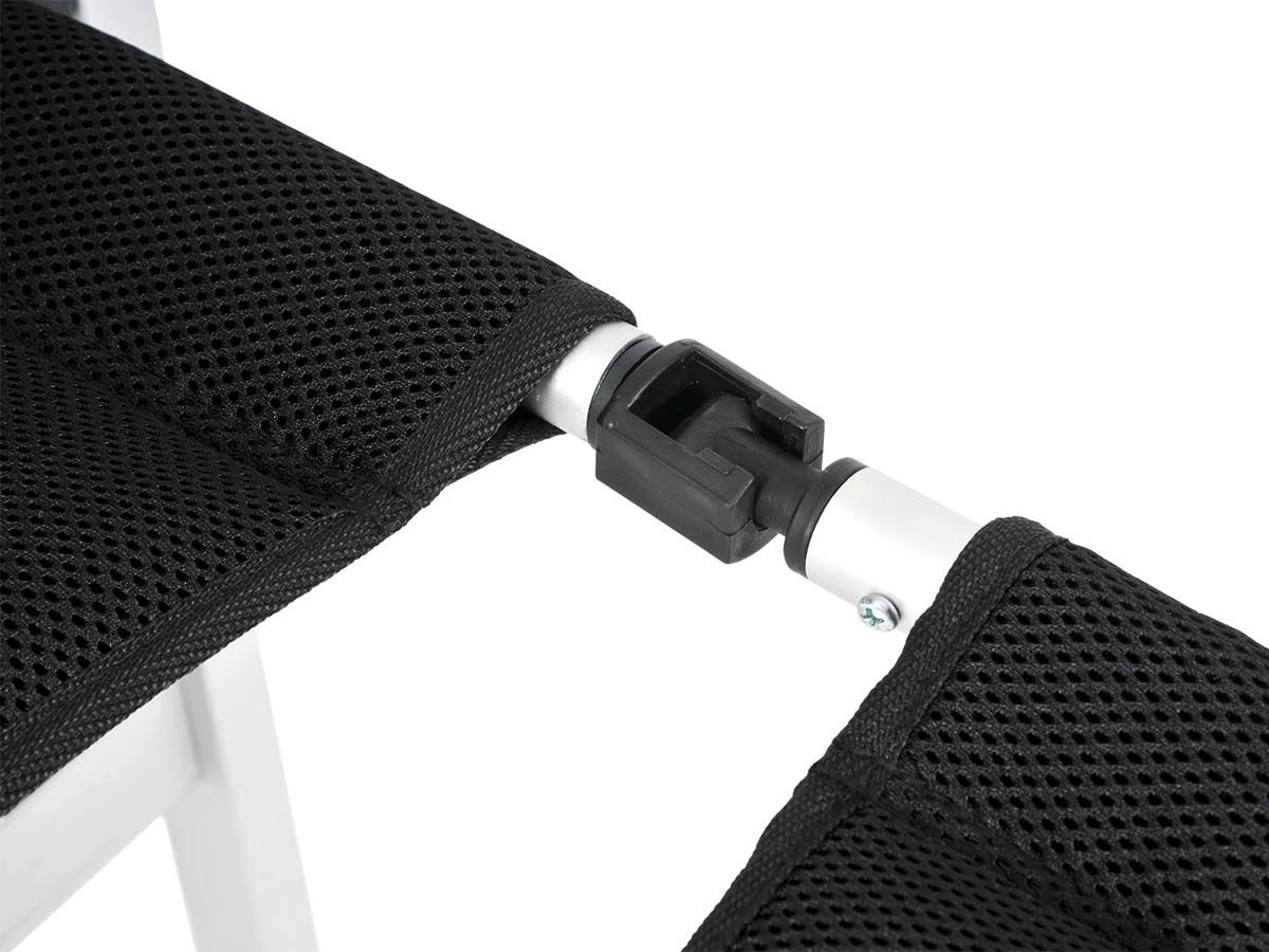 Het frame is gemaakt van aluminium met daarop een 3D mesh polyester bekleding voor optimaal comfort. De voetensteun is na gebruik plat in te klappen zodat hij eenvoudig vervoerd en bewaard kan worden.